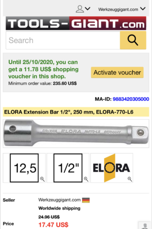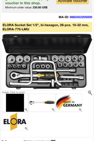 Elora LMU Standard Socket Set Chrome Vanadium Steel 1/2″ SquareDrive