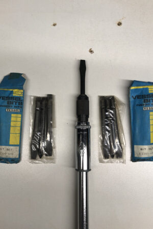 Grow 425mm Made in Japan. Kullanılmamışlardır. Sağ, Sol, Stop ayarı, Kapalı hali: 300mm, Açık Hali: 425mm Toplam 6 orjinal Vessel marka bits uç verilecektir. 4 Adet düz bits (6, 7, 8, 9 numara) ve 2 adet (2 numara) yıldız bits. Resimlerde detaylar gözükmektedir.